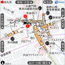 【1F】1.ハチ公前 2.TSUTAYA前