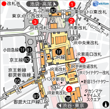 【1F】2.東口交番 4.東南口広場 【B1】3.西口交番 【2F】5.Suicaのペンギン広場